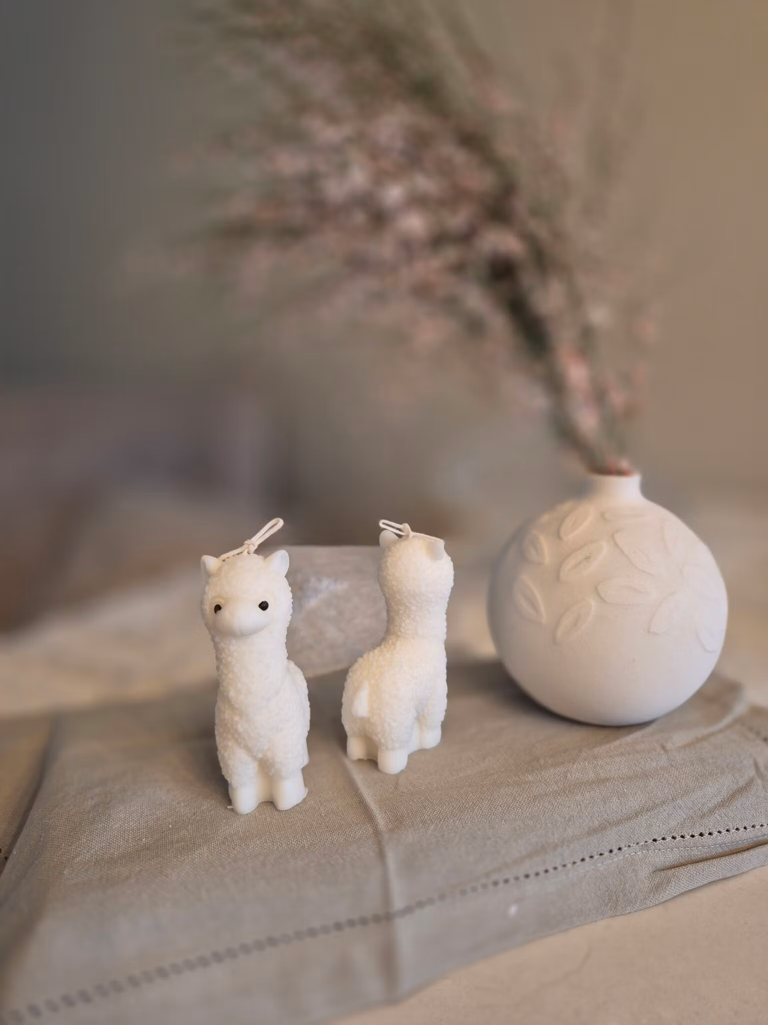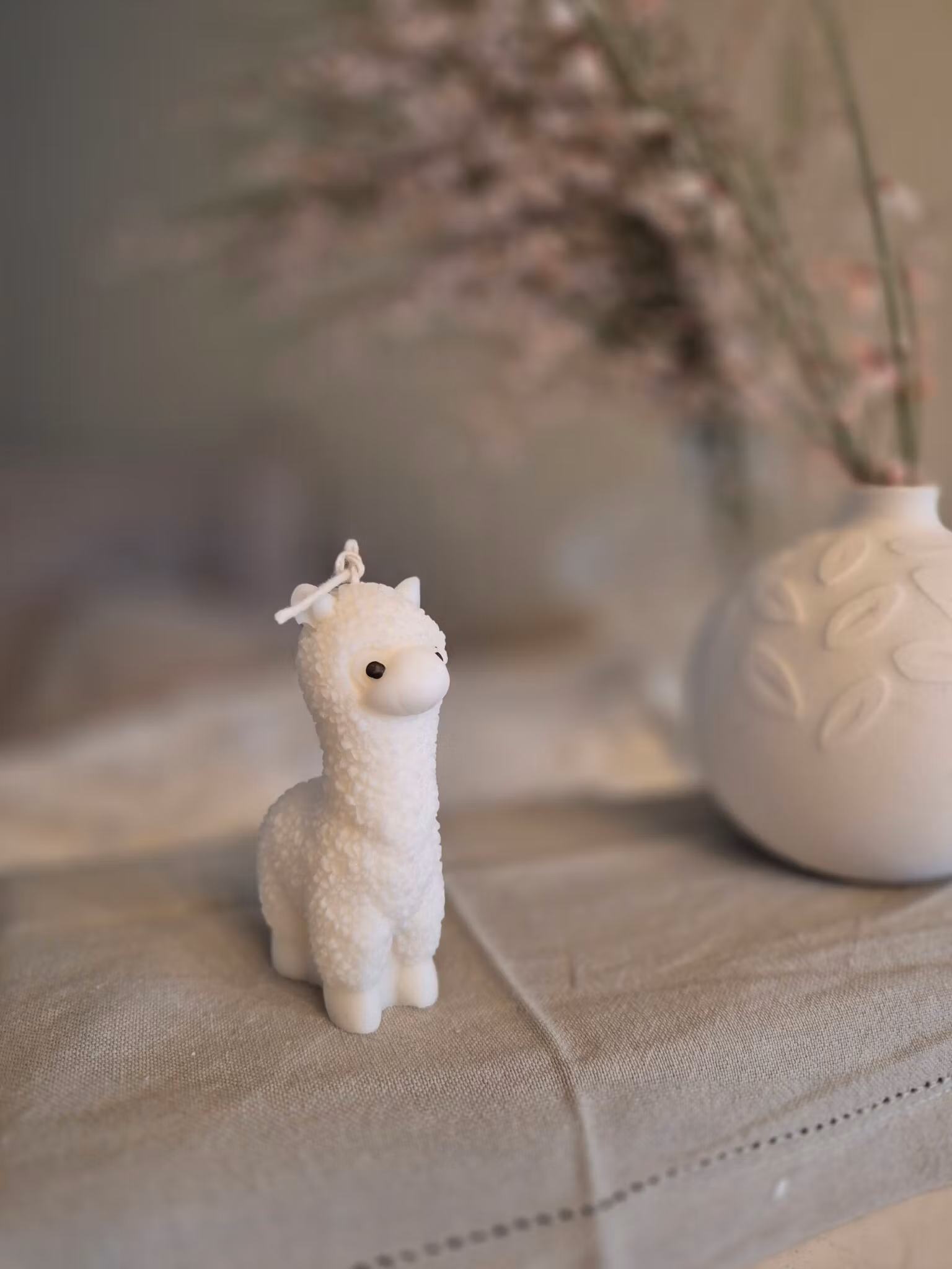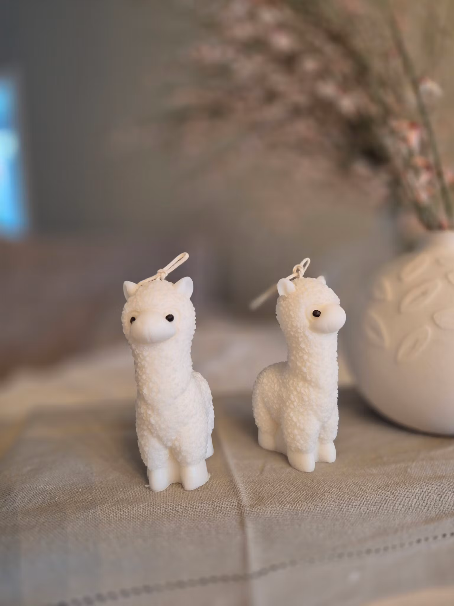 Møt Al Pakkino, en søt liten alpakka som har funnet veien inn i nettbutikken min etter et spesielt ønske fra en alpakkaeier i Selbu. Med sin unike sjarm og detaljrike design er dette lyset en herlig hyllest til alpakkaens verden. Al Pakkino er 10 cm høy og 4 cm på det bredeste, og er håndstøpt av meg i en soyavoksblanding.